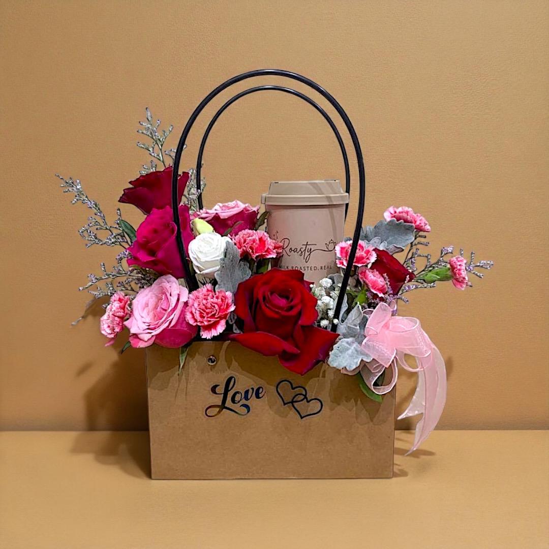 A joyful surprise of fresh blooms for someone, a little comfort for the tummy. Freshly brewed tea leaves and fresh milk, Roasty milk tea offers a healthy, low-calories content for everyday drink. Fresh flowers, decorative materials, and other items may be substituted depending on availability.