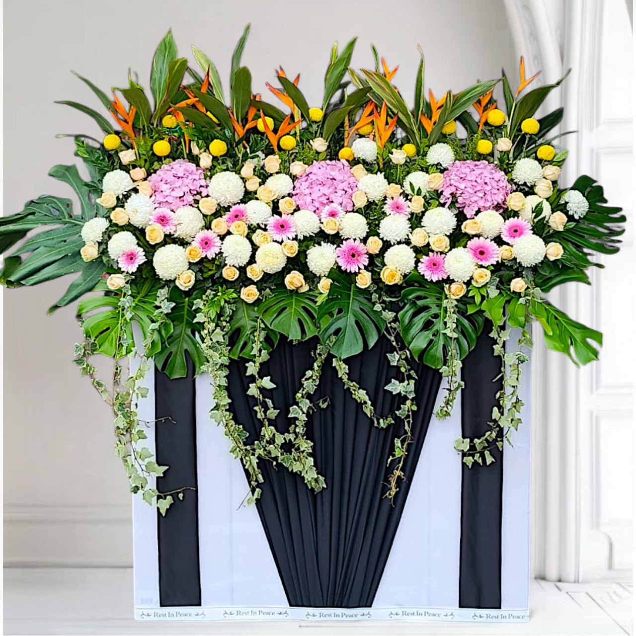 Condolence floral stand to the bereaved family.