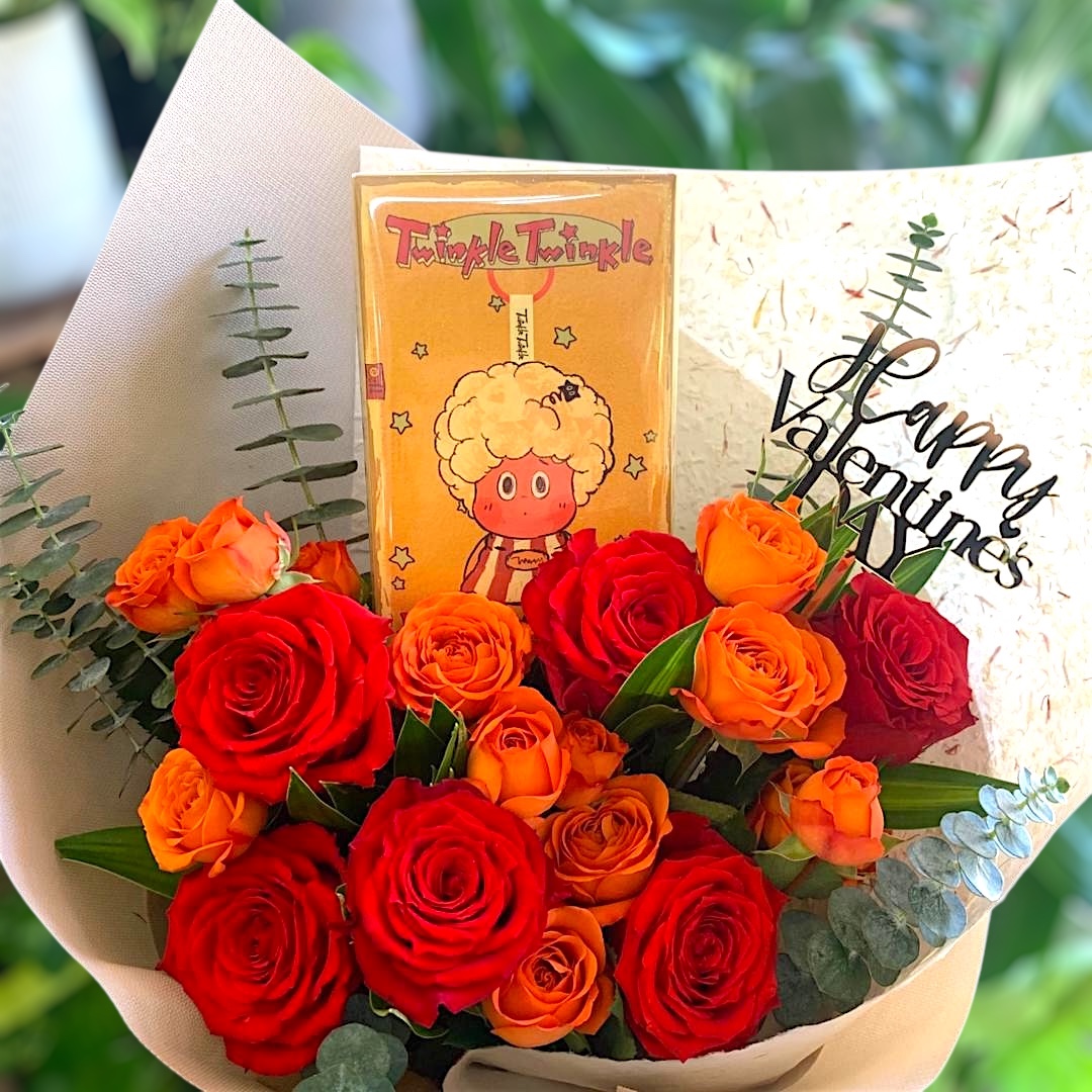 Nestled at the centre is the adorable Twinkle Twinkle – Be a Little Star Series Plush Pendant Blind Box, adding a fun surprise element to the bouquet. This charming blind box makes the gift extra special, combining romance with a sense of joy and excitement.